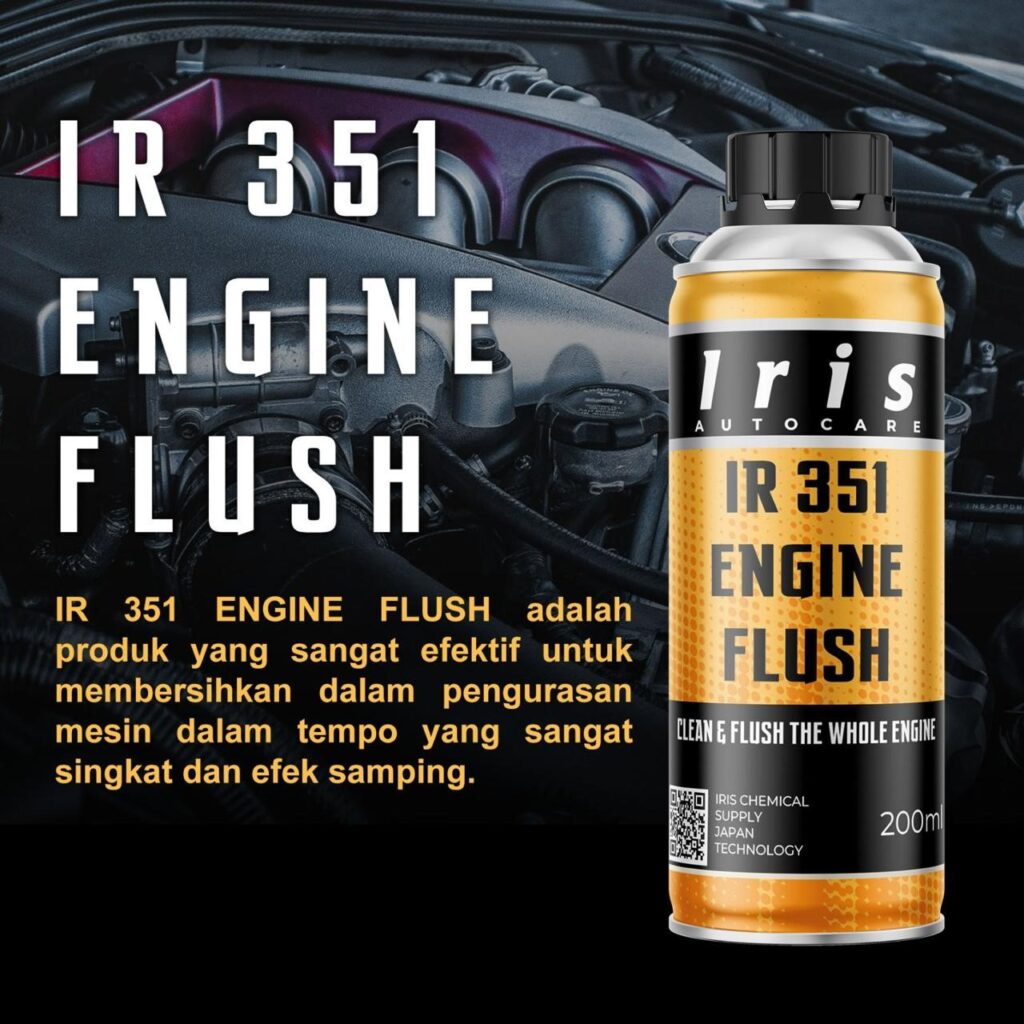 IR 351 Engine Flush adalah cairan pembersih internal mesin yang digunakan sebelum penggantian oli. Produk ini dirancang untuk membersihkan lumpur oli (sludge), varnish, kerak karbon, dan endapan lain yang menumpuk di dalam mesin, termasuk pada bagian seperti crankcase, piston ring, dan saluran oli.