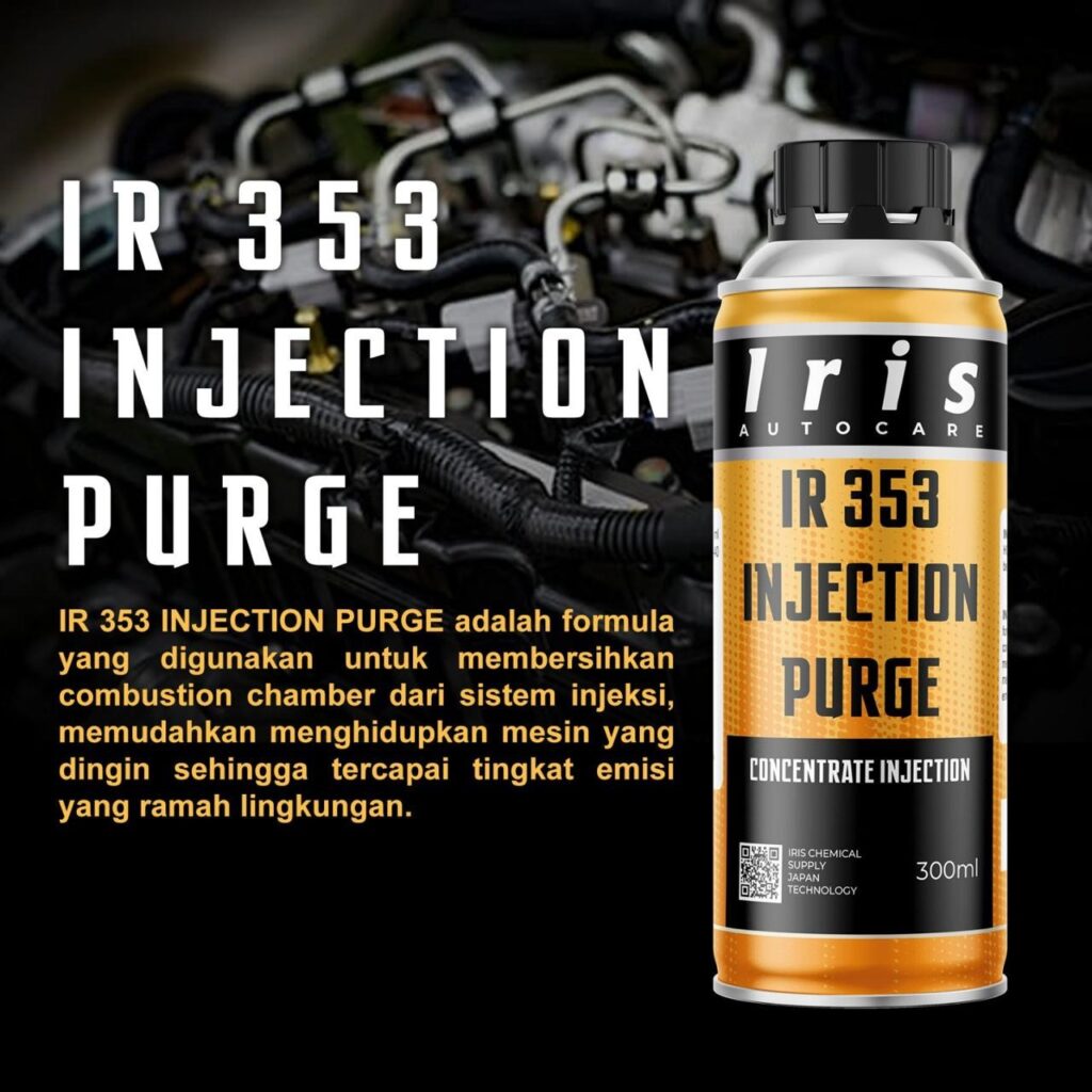 IR 353 Injection Purge adalah cairan pembersih sistem injeksi berformulasi tinggi yang dirancang untuk membersihkan ruang bakar (combustion chamber), injektor, dan saluran bahan bakar dari deposit karbon, varnish, dan sisa pembakaran. Produk ini membantu memulihkan performa mesin, mempermudah starter dingin, dan menurunkan emisi gas buang, menjadikannya ramah lingkungan dan ideal untuk kendaraan modern.